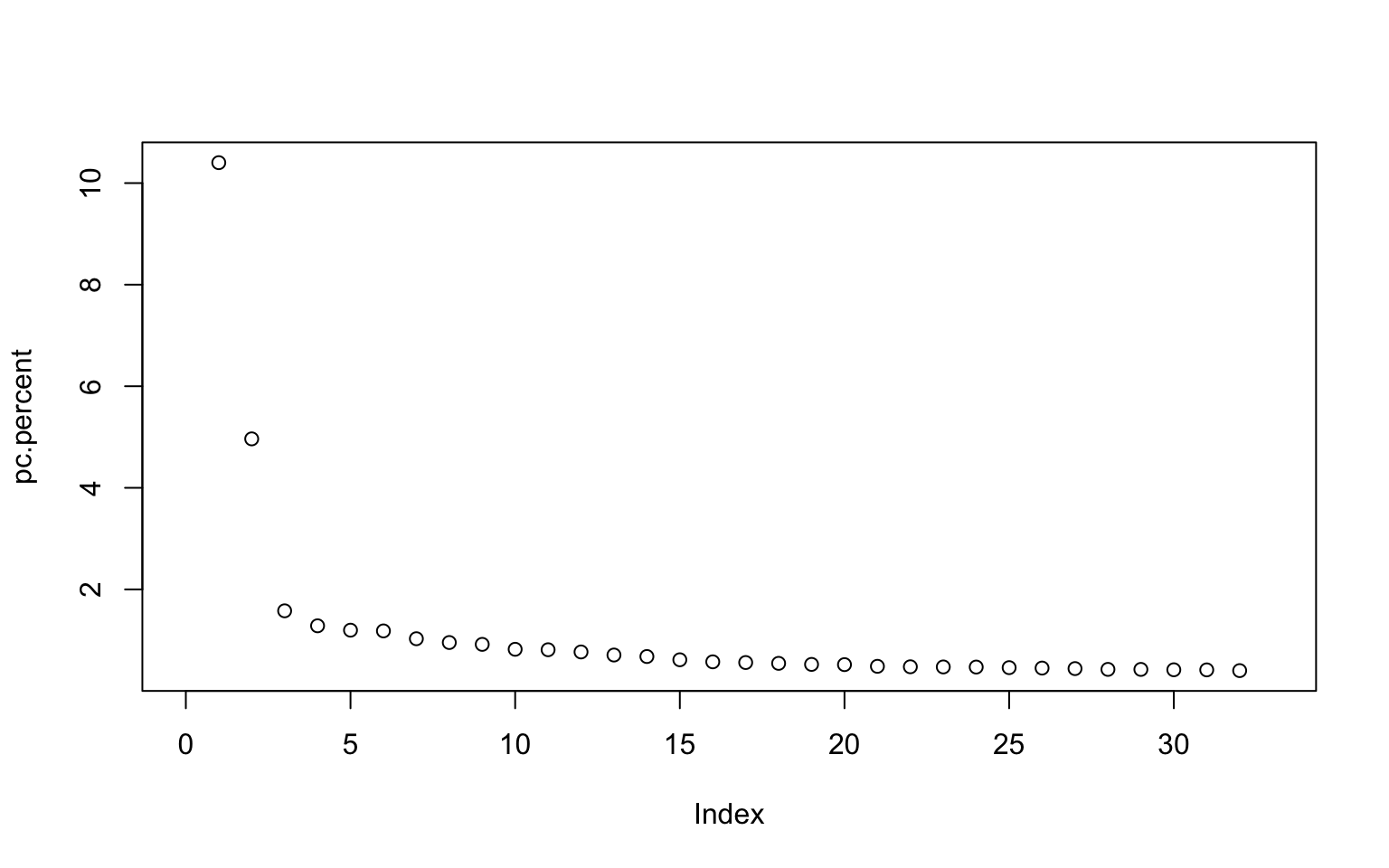 The main drop off in the graph is around 3, suggesting that those first three axes explain most of the variation. However let’s include PCs 1 through 10 to explore the data more in depth.