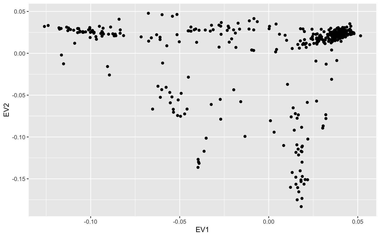 We will also need gdsfmt() to open the newly created GDS formatted file and since it is a dependency for SeqArray() it will actually download with that package installation. This package calculates the eigenvectors and eigenvalues for principal component analysis, meaning that it will look at how the samples are similar and different from one another and plot that variation using principle component axes. We will also need ggplot2(). After installing all of these packages be sure to load them with the commands below: